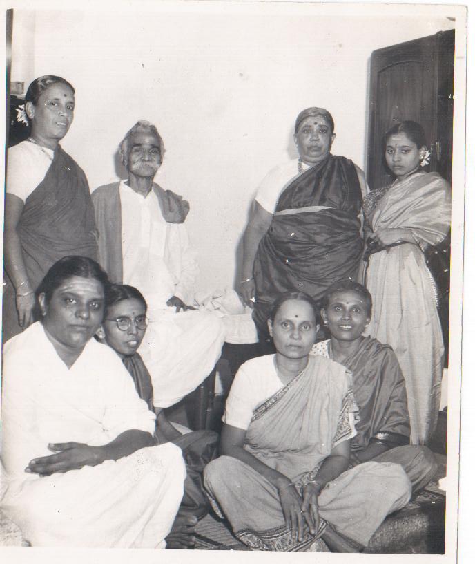 அடுத்த வரிசை எம்.எஸ்.சுப்புலக்ஷ்மி, பிச்சம்மாள் அண்ணி, நாமகிரி அம்மாள், ருக்மணி அம்மாள், தங்கம் அனந்தநாராயணன், கி.ராஜேந்திரன், ஒரு அம்மையார், ராமசந்திரன், அனந்தநாராயணன்.